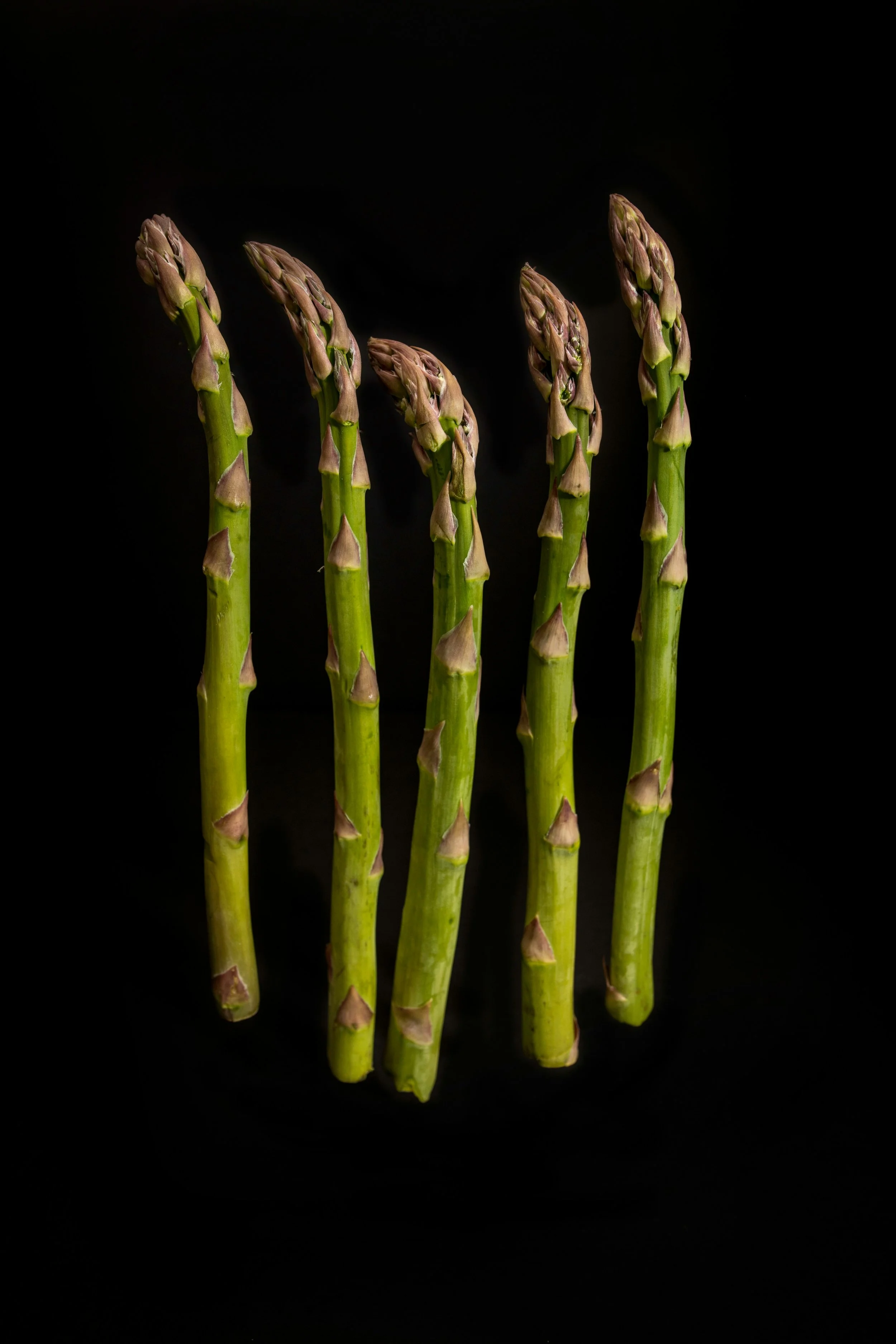 White, green and purple asparagus are all the same species (asparagus officinalis). The color difference comes from growing methods and genetics. Dirt is piled over the spears to keep them in darkness and the plant never produces chlorophyll and stays white. Whereas purple asparagus is a genetic variety, developed in Italy. The violet comes from high level of ‘anthocyanins’, an antioxidant pigment found in blue berries and red cabbage. Its only on the outside – so snap it and you will see the green or white inside. Because anthocyanins are sensitive to heat – purple asparagus will turn green when cooked.